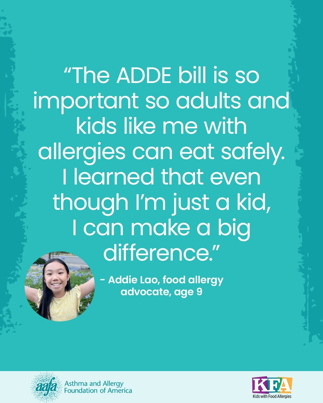 AAFA supported and co-sponsored the ADDE Act along with food allergy advocates Robyn and Addie Lao — who at age 9 inspired dozens of other children and teens to rally support for this bill. AAFA helped recruit support from nearly 70 state and national organizations, more than 500 health care professionals, and over a thousand California residents.