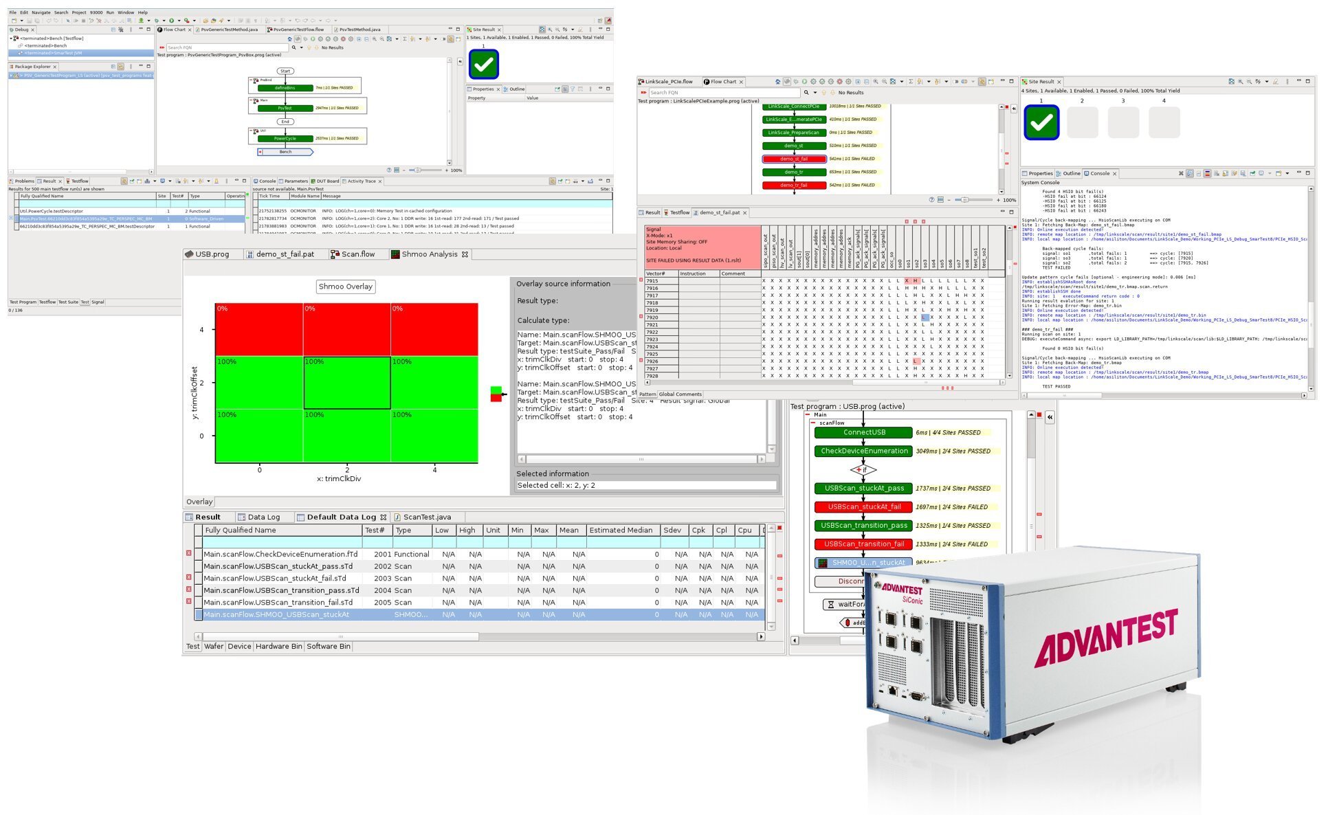 Building on the V93000 test system’s leadership in scan over USB or PCIe, SiConic’s unified environment brings native DV test content to test engineering without the error-prone and lengthy conversion and debug cycles typical for bring-up of advanced functional tests on ATE. Required for high-quality coverage in verification and test, functional testing enables a productivity boost for the bench collaboration of DV, DFT and test engineering. SiConic TE accelerates time-to-quality for both the V93000 and Advantest’s system-level test (SLT) and burn-in platforms with the ActivATE360™ suite of software tools.