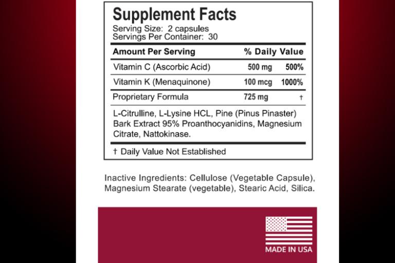 Key Boostaro ingredients include L-Citrulline, Pine Bark Extract (Pinus pinaster), Vitamin C, L-Lysine, Magnesium, Vitamin K2, and Nattokinase. Each has been clinically studied for its potential role in cardiovascular support, circulation, and energy metabolism. These ingredients work synergistically to help support healthy blood vessel function.