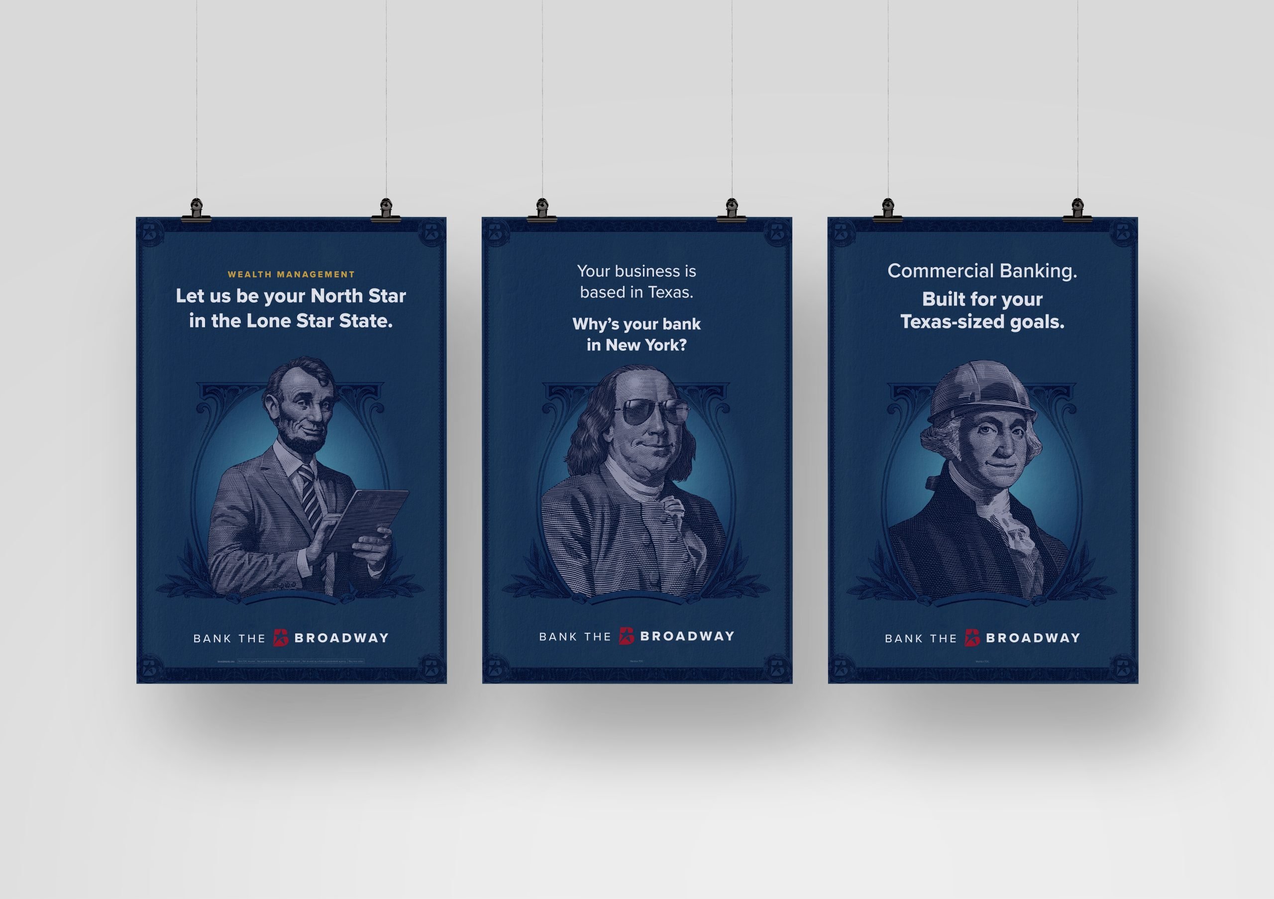 The Bank the Broadway campaign leverages Texas pride and the trailblazing spirit of Texans who do things their own way. It challenges consumers to ask themselves why they would settle for banking with outsiders — and lets them know there’s a better way: The Broadway. The campaign flips the script on traditional banking campaigns by reimagining the Founding Fathers — those iconic figures engraved on U.S. currency — through a uniquely local lens via scratchboard illustrations. Gone are the stiff poses and stuffy attitudes. In their place, we see lively, approachable personalities that feel like they’ve been plucked straight out of a Hill Country barbecue, or a Sunday run to the grocery store.