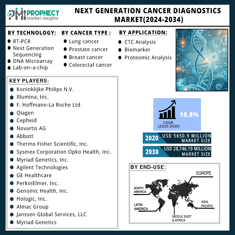 Browse Detail Report on “Next Generation Cancer Diagnostics Market Size, Share, By Technology (Protein Microarrays, Next Generation Sequencing, DNA Microarrays, qPCR & Multiplexing, and Others), By Cancer Type (Lung Cancer, Breast Cancer, Colorectal Cancer, Cervical Cancer, and Other Cancer Types), By Function (Risk Analysis, Prognostics, Therapeutics Monitoring, Cancer Screening, and Companion Diagnostics), By Application (CTC Analysis, Biomarker Development, Proteomic Analysis and Others), and By Region – Trends, Analysis, and Forecast till 2034” with complete TOC @ https://www.prophecymarketinsights.com/market_insight/Global-Next-Generation-Cancer-Diagnostics-Market-4748