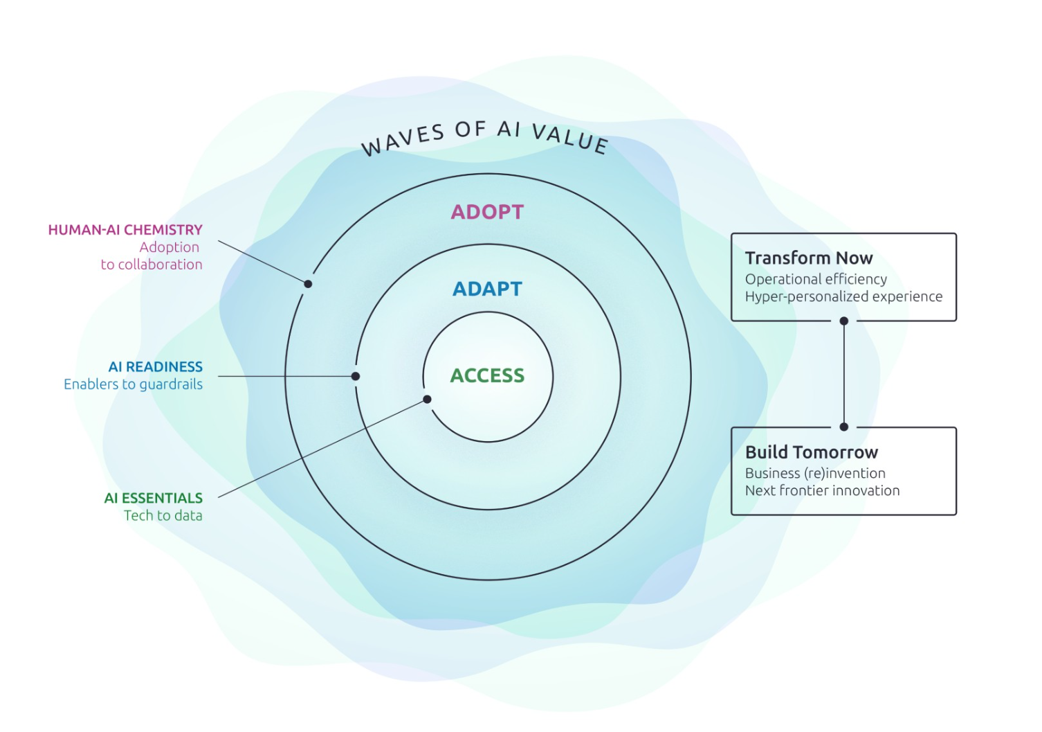 - Human-AI chemistry (ADOPT): To achieve success with AI, organizations must intentionally design interactions between humans and AI across workflows, decision-making, and culture. The quality of collaboration between humans and AI is shaped by three core elements: clearly defined roles and responsibilities, well-designed interactions, and strong alignment with legal and ethical standards to build reliability over time. Just as team chemistry drives human performance, human-AI chemistry will shape how deeply AI can integrate into the enterprise.