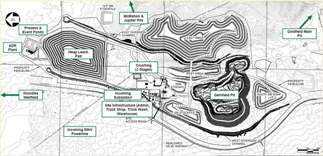 - The Gemfield pit includes a volume of “must take” mineralized material (662,157 tonnes and 6,469 contained ounces) for permitting and closure purposes which lies outside the optimized pit shell. This material is included in the Gemfield reserve pit and economic analysis.