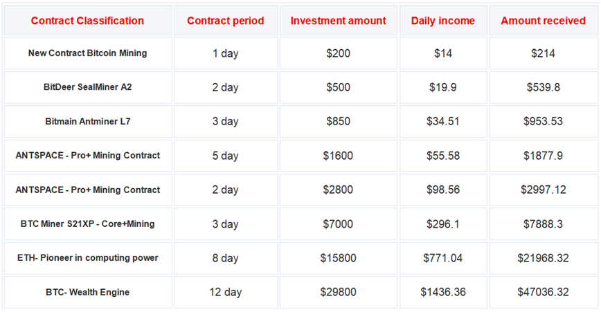 Users can start earning immediately without purchasing mining rigs or paying utility bills. All pricing and terms are fully disclosed in advance. There are no withdrawal fees, and earnings are automatically settled in real time, every day.
