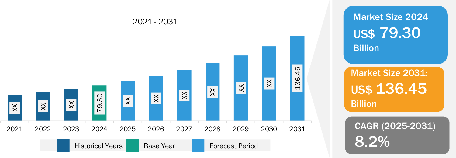 1. Market Growth: The Commercial HVAC Market was valued at US$ 79.30 billion in 2024 and is projected to reach US$ 136.45 billion by 2031; it is expected to register a CAGR of 8.2% during 2025-2031.