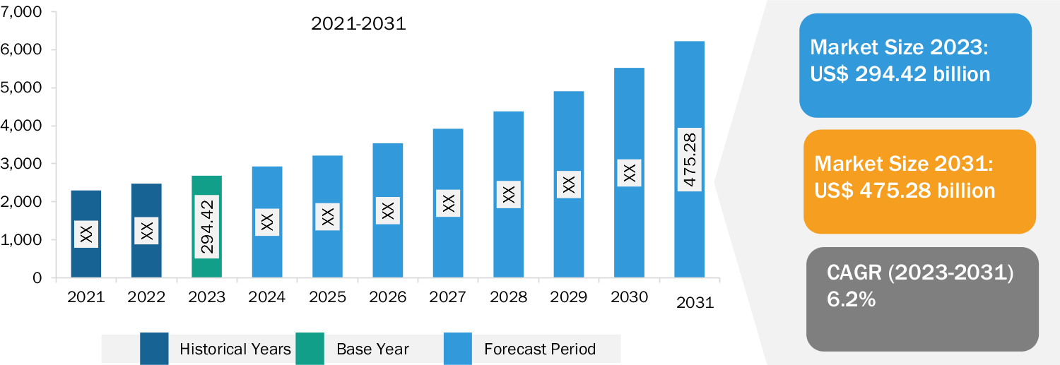 Contract Logistics Market Growth: The Contract Logistics Market size is projected to reach US$ 475.28 billion by 2031 from US$ 294.42 billion in 2023. The market is expected to register a CAGR of 6.2% in 2023–2031. The increasing population drives the rapid growth of South Africa’s supply chain & logistics industry, which is projected to reach ~2.5 billion by 2050. Additionally, the growth of e-commerce platforms and digital technologies has increased the potential to transform the transportation of goods, making it convenient to track and deliver products over long distances. South Africa is a notable emerging economy; it is also the gateway to Sub-Saharan markets. In 2023, C&D Logistics signed the Intentional Cooperation Agreement with PG South Africa. Under the agreement, C&D Logistics is anticipated to strengthen cooperation with PG South Africa on nonferrous metal mineral products. This agreement is expanding the cooperation between the two parties and contributing to the economic and trade investment and support between South Africa and China, enabling a proper supply chain of mineral products. In 2023, HRMP Logistics planned to invest US$ 0.79 million to establish a new warehouse and distribution facility in the Dube Tradeport Special Economic Zone situated in Durban. In 2023, A. P. Moller–Maersk, a global integrator of logistics, opened its first warehousing & distribution facility in Cape Town, South Africa. This facility is anticipated to strengthen the company’s customer base in South Africa by connecting and streamlining its supply chains with comprehensive logistics solutions. Thus, the surge in activities in transportation and warehousing, as well as the growing consumer goods distribution network, is boosting the expansion of the logistics sector, which fuels the growth of the contract logistics market.