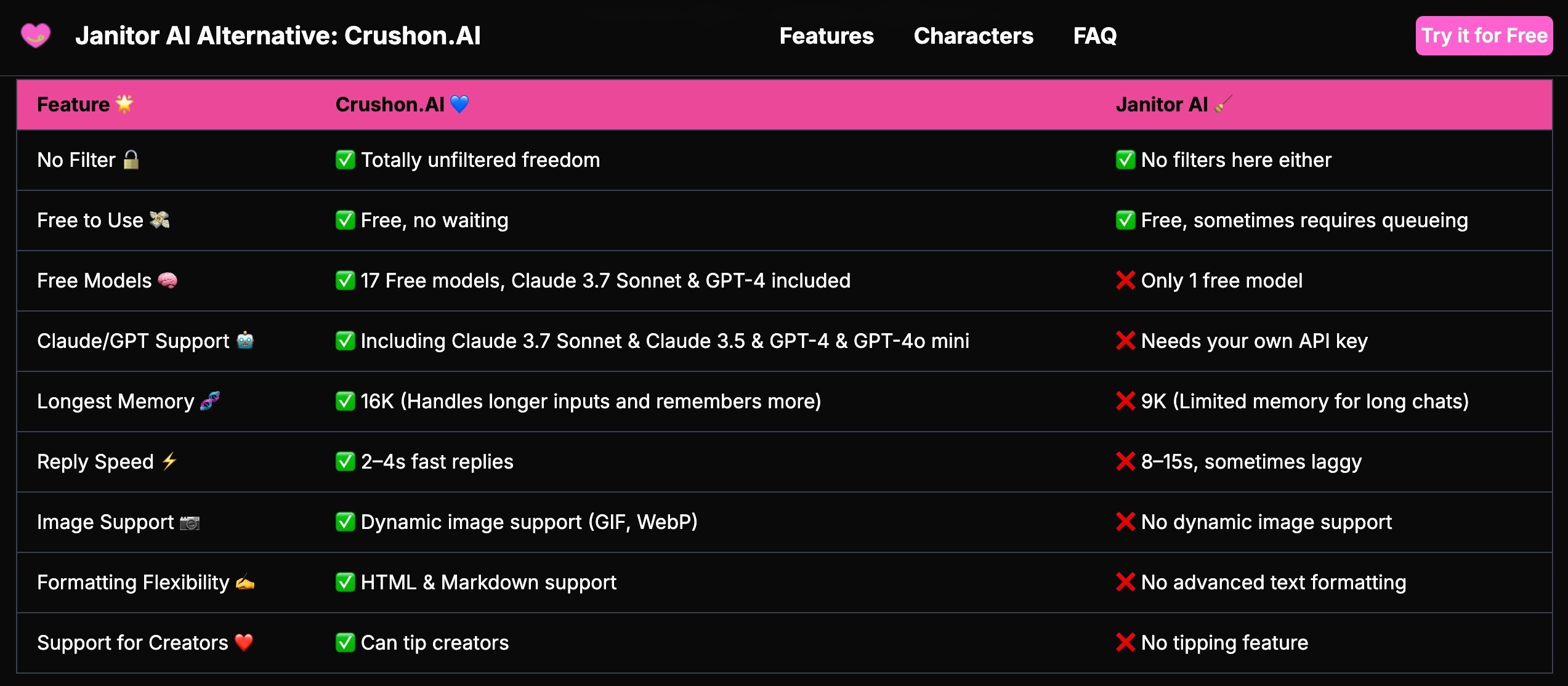 For those tired of “Janitor AI Down” alerts and complex installations, Crushon offers a direct, seamless solution to find today.