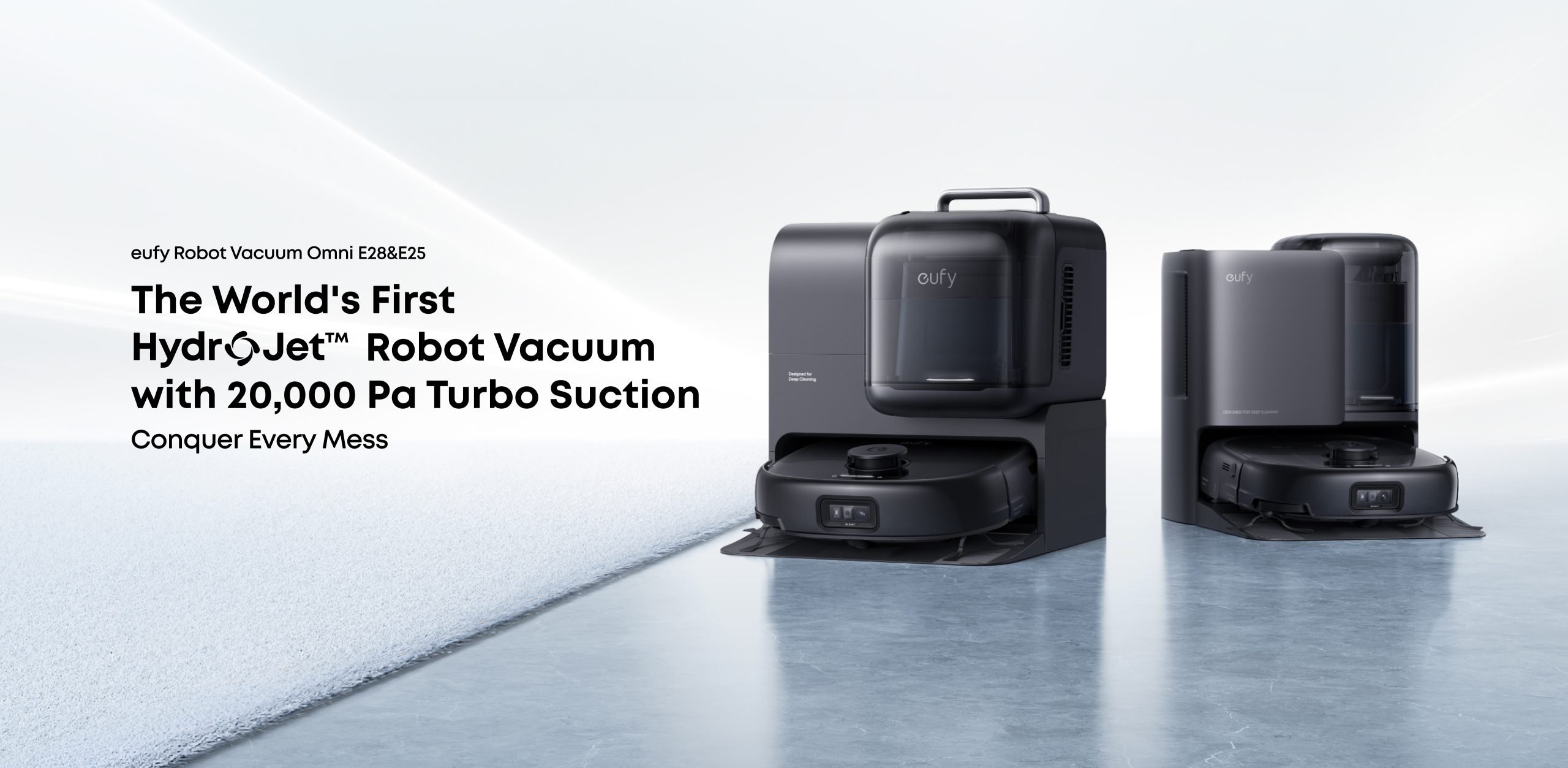 Two new models offer eufy’s HydroJet™ self-cleaning mopping technology and industry-leading 20,000 Pa suction power: E28 available now, E25 under pre-sale