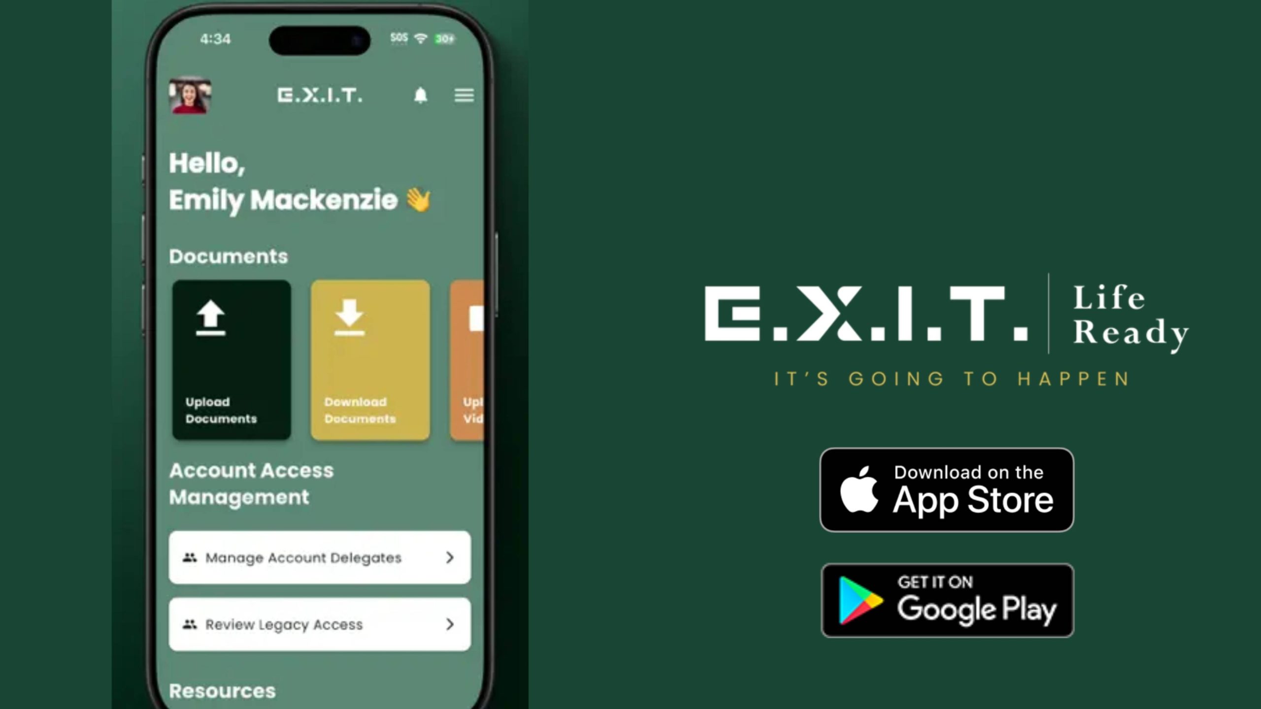 Exit Life Ready is now available on both iOS and Android. Download today to start planning your future, your way, and keep your legal and medical documents safe and accessible.