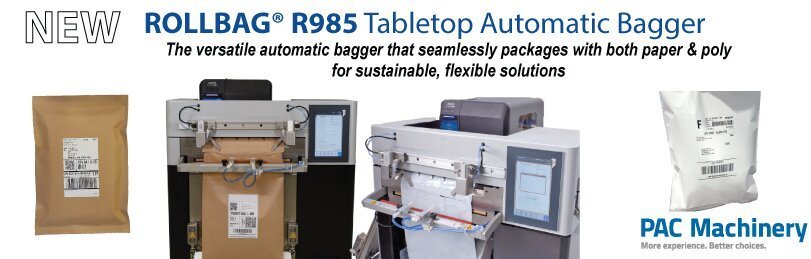 SAN RAFAEL, Calif., Jan. 28, 2025 (GLOBE NEWSWIRE) — PAC Machinery proudly announces the Rollbag® R985 Automatic Bagger – a game-changing packaging solution that redefines sustainability and adaptability in packaging. Designed to seamlessly operate with both PAC’s Fiberflex® pre-opened paper mailers and Rollbag® polyethylene (PE) pre-opened bags, the Rollbag R985 empowers businesses to embrace eco-friendly practices while maintaining operational flexibility. This future-proof solution ensures compliance with evolving packaging regulations and provides businesses with a strategic path to transition from poly to paper as their needs evolve.