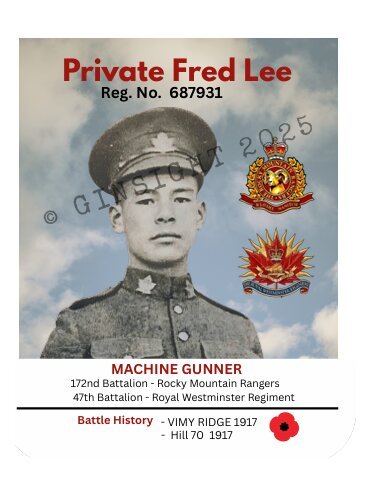 - Fred Lee – 172nd Battalion, Rocky Mountain Rangers, Deceased 21 August 1917