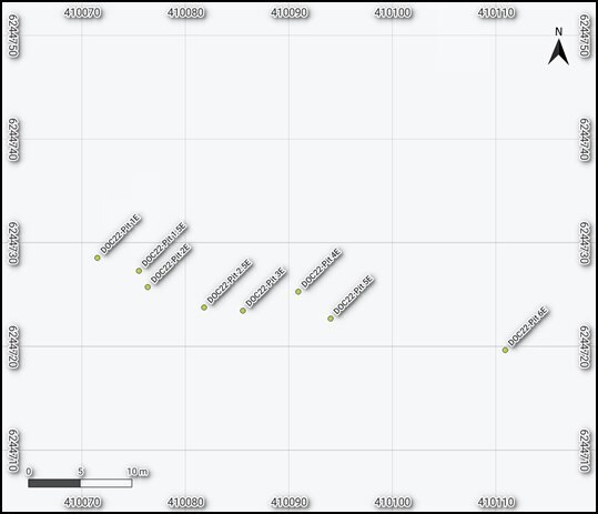 Assay results from the DOC Zone yielded a high value of 43.91 g/t Au and 244 g/t Ag from a 110.0kg sample from Pit 3E at the Q17 vein, out of a total of three bulk samples taken along an approximately 10-metre long zone on the Q17 vein (see Figure 1 below). The single bulk sample taken at the Q19 zone yielded 7.04 g/t Au and 85 g/t Ag from a 130.0kg sample.