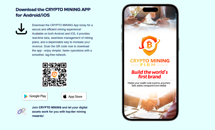 Download the CryptoMiningFirm official app (supports iOS and Android), check your earnings anytime, anywhere, reinvest, and build your own “automatic money-making machine”.
