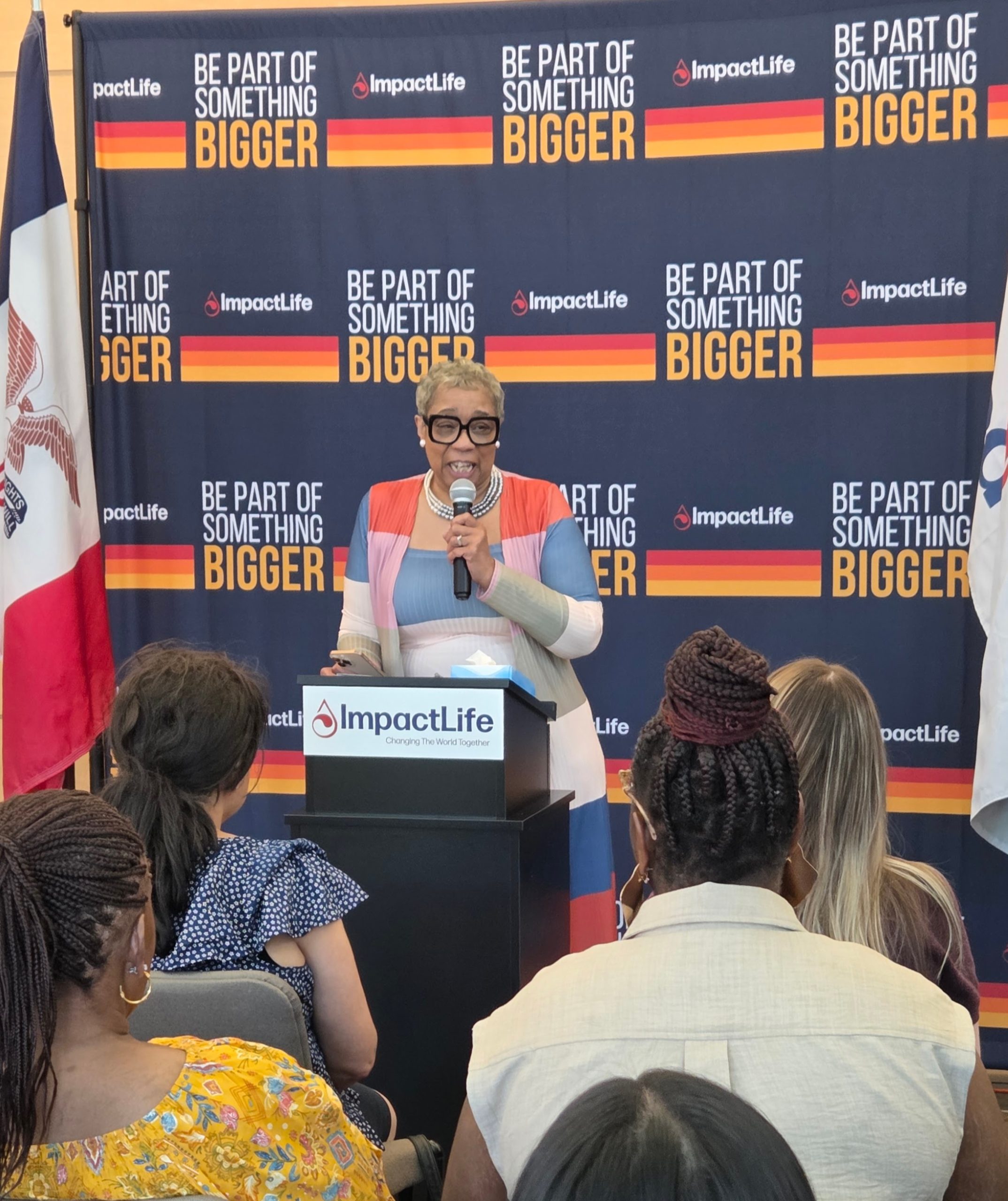 Cheryl Easley, of the ImpactLife donor scheduling team, helped organize the event, and recognized sickle cell “Warriors In Battle” as well as “Winged Warriors,” who have passed after living with the disease throughout their lives.