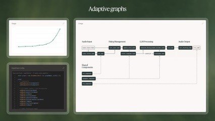 A C++-based graph execution system that solves scaling cross-platform limitations faced by most AI frameworks, with SDKs for Node.js, Python and others. Developers compose applications using pre-optimized nodes as building blocks (with APIs from top providers for LLM, TTS, STT, knowledge, memory and much more) that handle low-level integration work and automatically optimize data streams between components. The same graph seamlessly scales from 10 test users to 10 million concurrent users with minimal code changes and managed endpoints. With vibe-coding friendly interfaces this directly enables the leap from prototype to production in days, not months.