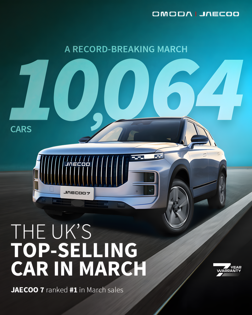 “Securing the number one position in the UK – both for March and year-to-date – is a landmark moment for JAECOO. The JAECOO 7 has resonated strongly with British customers thanks to its combination of advanced technology, standout design and real-world usability, particularly with our Super Hybrid System.