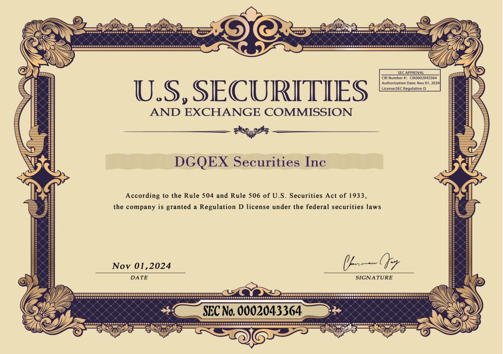 As a globally authoritative financial regulatory body, the SEC enforces stringent requirements for financial institutions. The Regulation D license, specifically designed by the SEC for private securities offerings, imposes rigorous standards on information disclosure, investor protection, and fund security. The successful acquisition by DGQEX of this license demonstrates its professional expertise in compliance development, risk management, and investor protection.