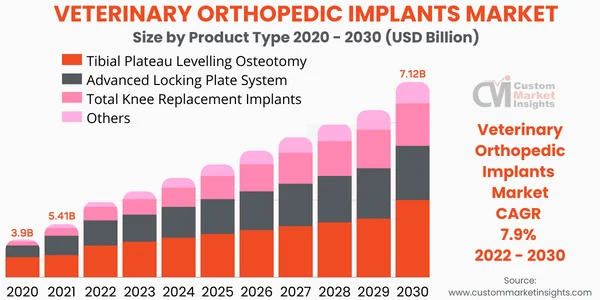 Sandy, Utah, USA, Jan. 19, 2023 (GLOBE NEWSWIRE) — Custom Market Insights has published a new research report titled “Veterinary Orthopedic Implants Market Size, Trends and Insights By Product (Tibial Plateau Levelling Osteotomy, Advanced Locking Plate System, Total Knee Replacement Implants, Others), By End-User (Hospitals, Clinics, Others), and By Region – Global Industry Overview, Statistical Data, Competitive Analysis, Share, Outlook, and Forecast 2022–2030” in its research database.