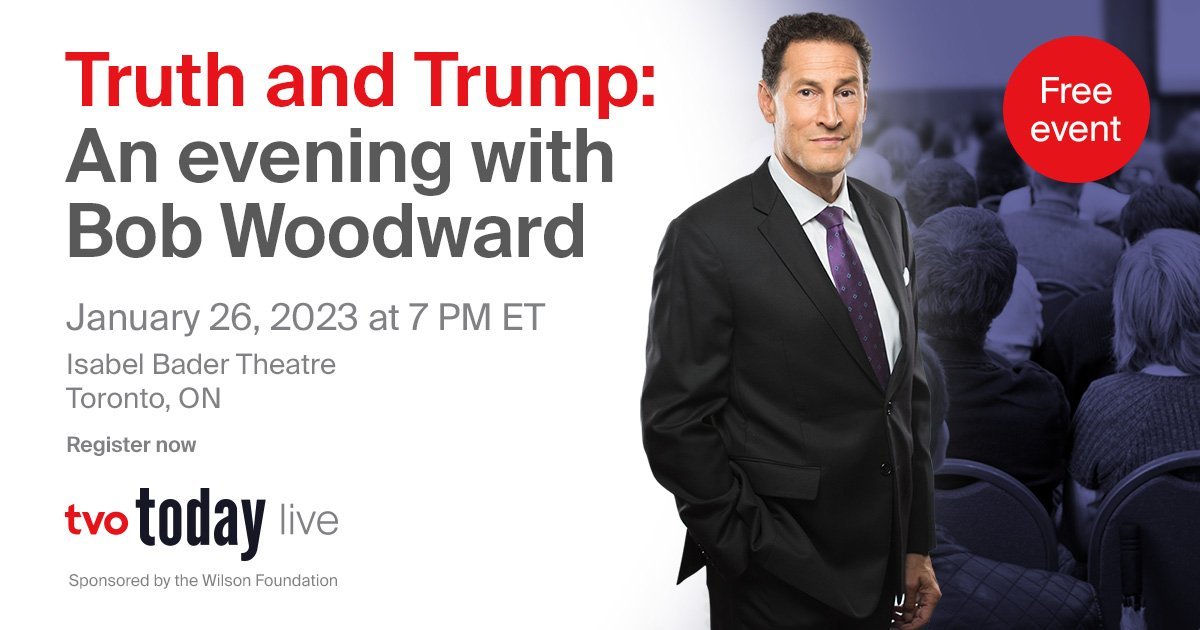 This question will spur a lively discussion with legendary journalist and author Bob Woodward (All the President’s Men, The Trump Tapes) when he takes the stage with Steve Paikin (The Agenda) at TVO Today Live on Thursday, January 26, 2023. Members of the public can register for free via Eventbrite to attend this event at the Isabel Bader Theatre in Toronto, Ontario, at 7 pm ET. An audience Q&A will follow the conversation.
