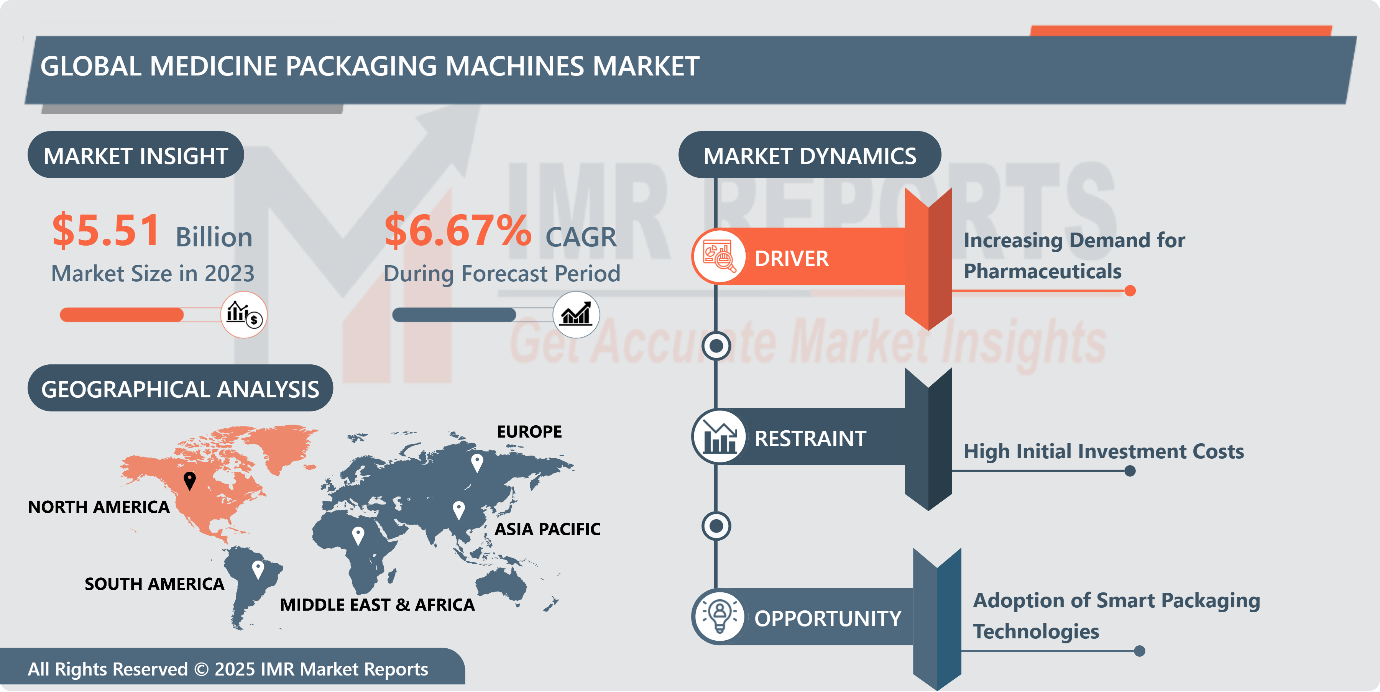 New York, United States, March 04, 2025 (GLOBE NEWSWIRE) — IMR Market Reports is pleased to announce the publication of its latest report, Medicine Packaging Machines Market. This in-depth analysis shows that the Global Medicine Packaging Machines Market, valued at USD 5.51 Billion in 2023, is set for substantial growth and is projected to reach USD 9.85 Billion by 2032. This anticipated expansion reflects a strong CAGR of 6.67% from 2024 to 2032.