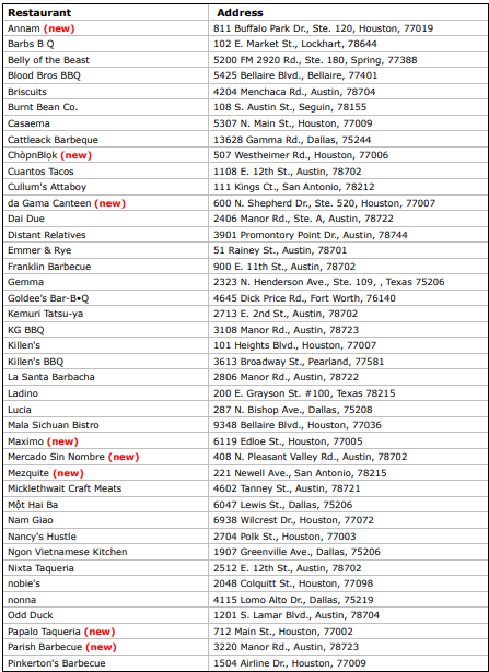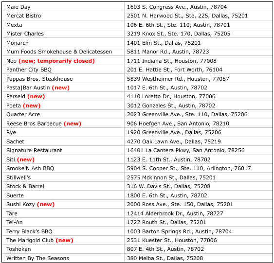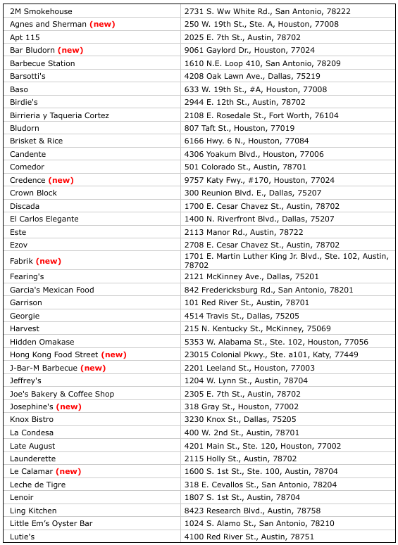 Texas’ 2025 Recommended restaurants