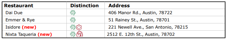 The restaurants join the MICHELIN Guide selection of hotels, which features the most unique and exciting places to stay in Texas and throughout the world.