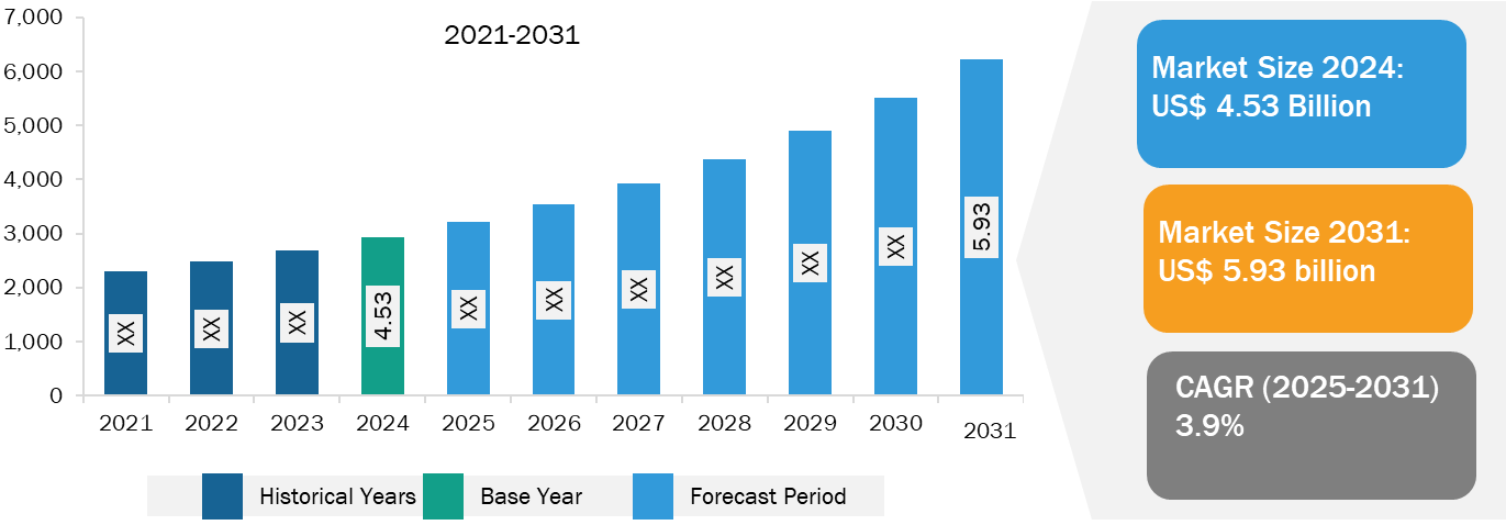 Military Wearables Market Growth: The military wearables market is expected to reach US$ 5.93 Billion by 2031 from US$ 4.53 Billion in 2024; it is expected to record a CAGR of 3.9% during the forecast period. With the increasing innovation and rising threat of terrorist attacks at night, the adoption of night vision devices is also rising. Likewise, thermal imaging helps soldiers locate a target in poor visibility conditions. Thermal imaging night vision devices are gaining popularity across the globe to strengthen individual warfighter systems. Night vision devices provide soldiers with greater situational awareness by illuminating their surroundings during nighttime operations. Earlier, night vision devices used relatively heavier components, adding weight to a soldier. Various market players are now introducing lightweight night vision products. For example, ACTinBlack has developed a lightweight binocular night vision device with high optical performance and an ergonomic design. In October 2023, Thermoteknix Systems, a US-based thermal imaging and augmented reality (AR) company, launched a night-vision solution called the Fused Night Vision Goggle with advanced Augmented Reality (FNVG-AR). FNVG-AR system is a lightweight binocular night vision goggle (NVG) integrated with advanced technology-based next-generation 16 mm white phosphor night vision tubes and a high-resolution thermal imager.