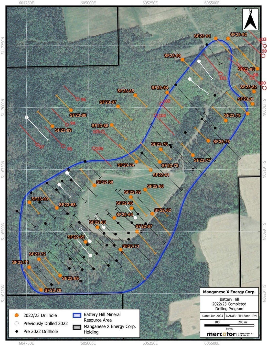 The holes were focused on infill and expansion drilling to upgrade Inferred resources to Measured and Indicated categories supporting an upcoming NI 43-101 compliant Pre-Feasibility Study currently underway by Mercator Geosciences. The Manganese X Energy Corp. press release is available on the Manganese X website.
