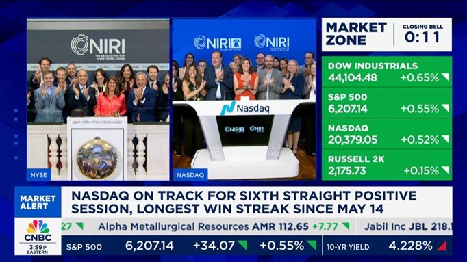 PHILADELPHIA, July 03, 2025 (GLOBE NEWSWIRE) — NIRI: The Association for Investor Relations, together with The Philadelphia Chapter of NIRI marked a milestone for the investor relations (IR) profession by ringing the closing bells at both the Nasdaq and New York Stock Exchange on Monday, June 30, 2025. The simultaneous ceremonies celebrated the strategic role of investor relations professionals in progressing communications, confidence, and connection between companies and capital markets.
