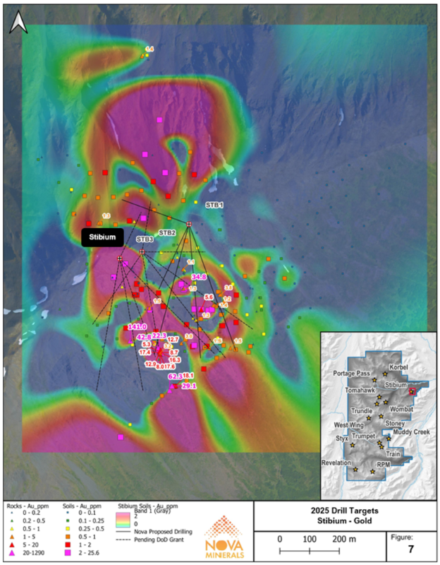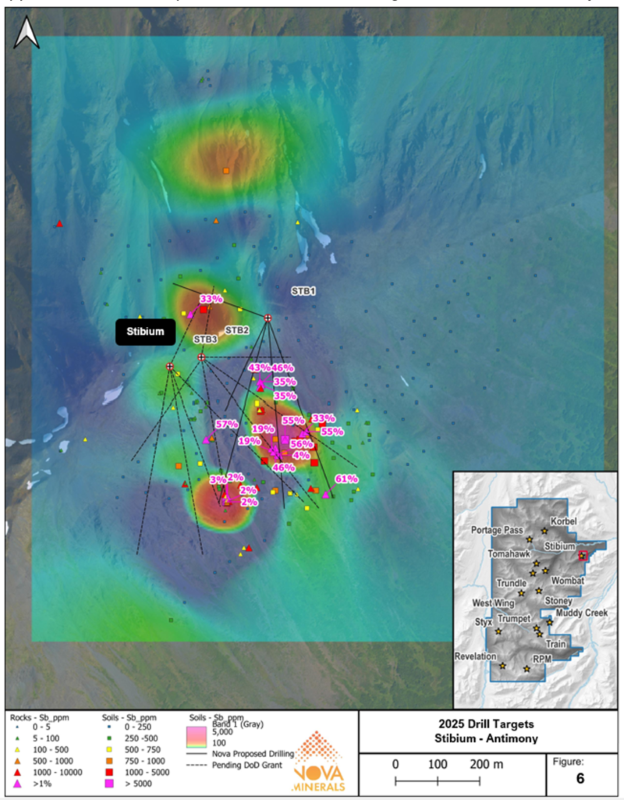 • Nova’s application for potential U.S. Department of Defense funding—aimed at accelerating the establishment of a mineral resource estimate, as well as processing, refining, and eventual antimony production at Estelle—continues to advance. Pending a successful outcome of its funding application, the Company intends to deploy additional diamond drill rigs to expand the 2025 drilling program. This would allow for extended drilling at the Stibium prospect and the potential commencement of initial drill testing at the highly prospective Styx target.