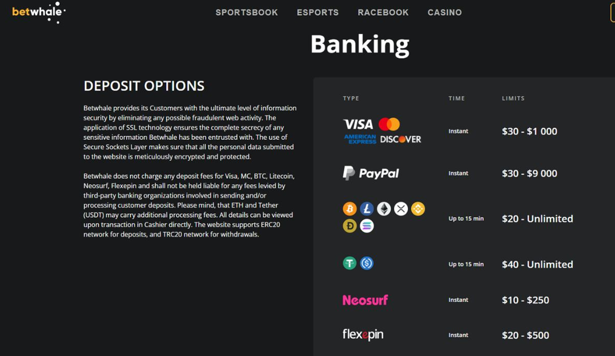 BetWhale supports a versatile range of deposit and payout methods to accommodate its US, CA, and AU player base, ensuring a smooth online casino California experience.