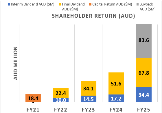Note: Buyback of A$83.6M includes transactions in FY26, up to the date of this report.