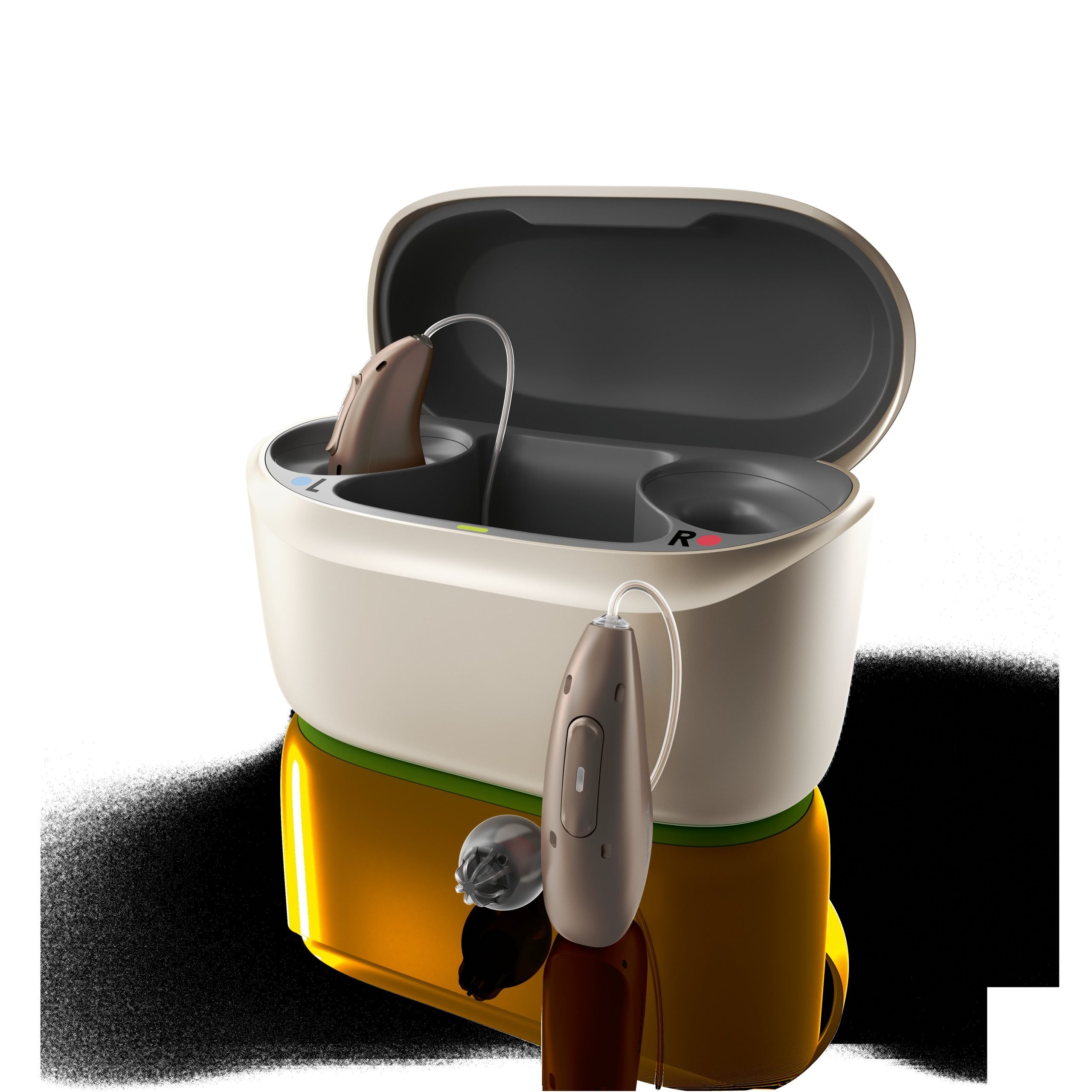 - Virto R Infinio: Phonak’s first rechargeable custom hearing aid (In-The-Ear/ITE) offering exceptional sound quality and industry-leading connectivity.