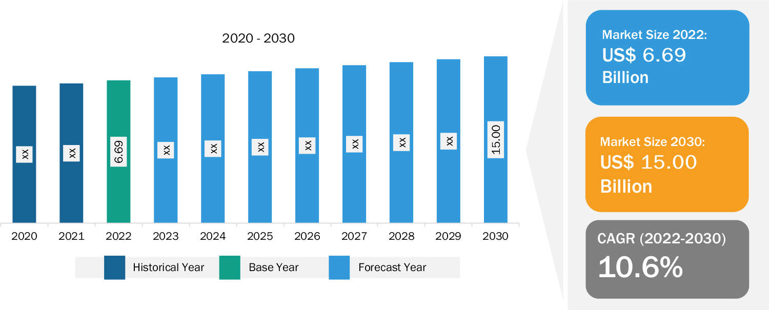 1. Market Growth: The global prefilled syringe market is expected to reach US$ 15.0 Billion in 2030 from US$ 6.69 Billion in 2022. The market is estimated to register a 10.6% CAGR during 2022–2030. The increasing prevalence of chronic disorders and the growing adoption of self-injecting parenteral devices drive the market growth. However, increasing product recalls hampers the prefilled syringe market growth.