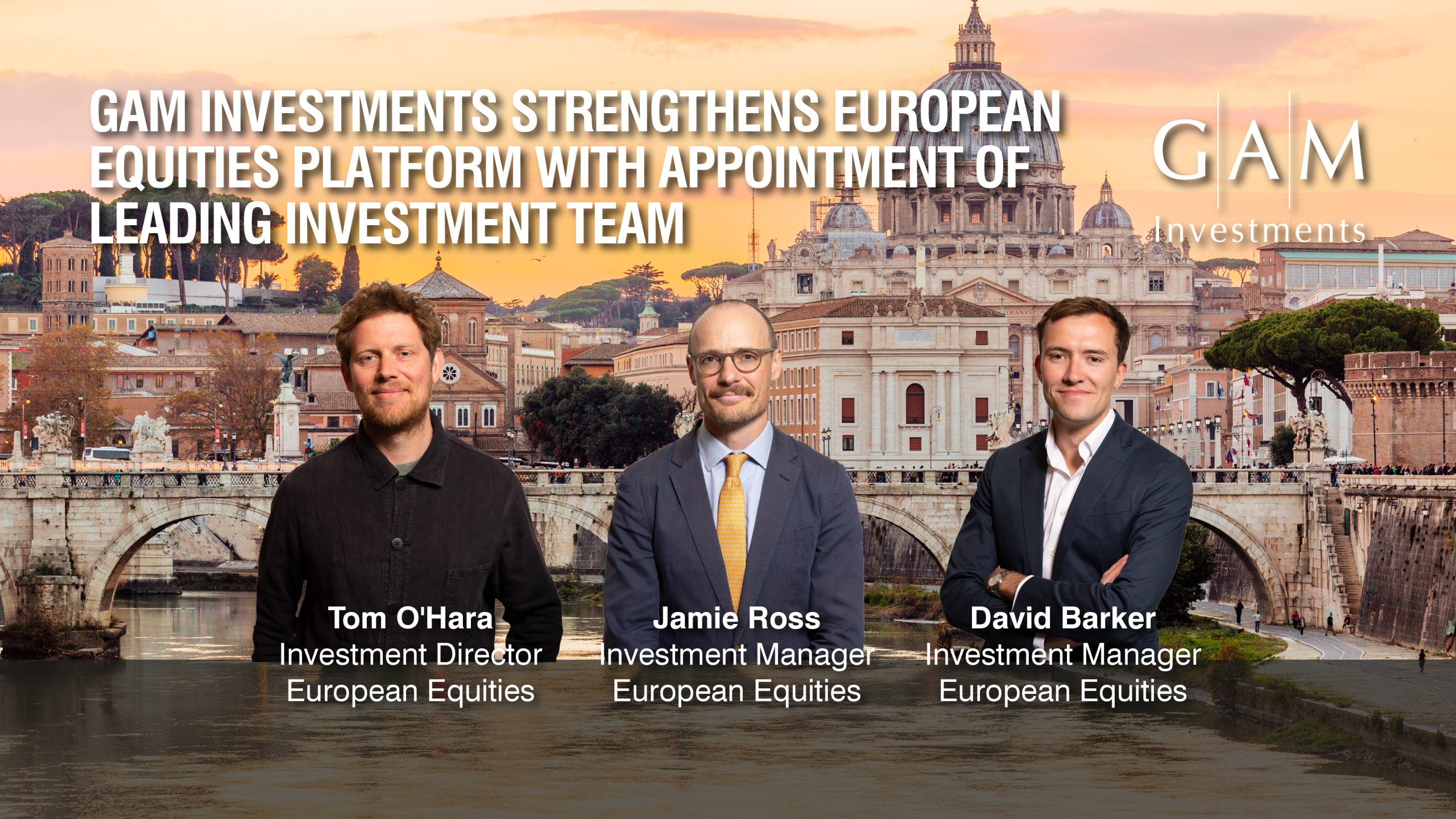 GAM Investments is pleased to announce the appointment of a new European Equities team comprising Tom O’Hara, Jamie Ross and David Barker. As of 15 May 2025, the team has assumed investment management responsibilities for the GAM Star European Equity and GAM Star Continental European Equity funds.