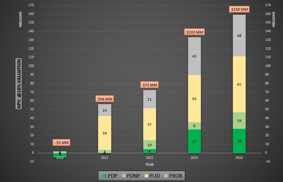 - NPV before tax for PDNP reserves doubled from $8.5MM to $18.9MM at a 10% discount rate