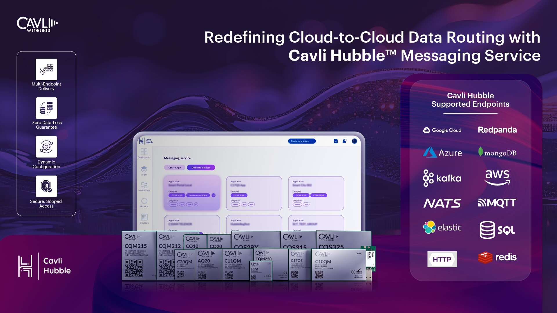 The Cavli Hubble Messaging Service is a scalable, cloud-agnostic routing engine designed to move IoT data from millions of devices in real time. Extending the Hubble platform’s core orchestration capabilities, HMS enables multi-endpoint delivery, allowing individual device streams to simultaneously feed analytics engines, storage systems, and application backends without requiring firmware changes.