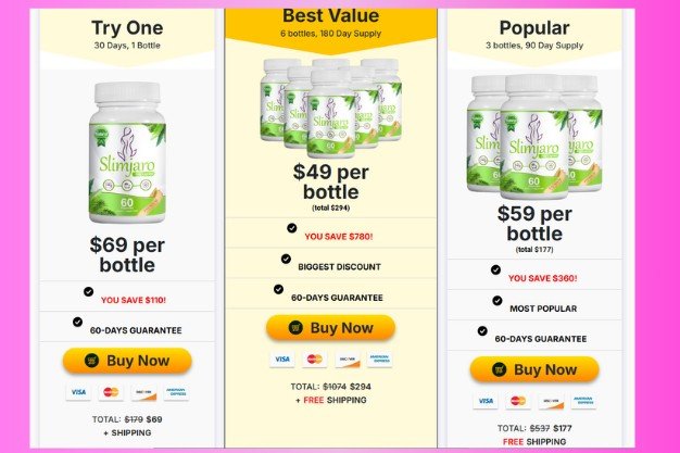SlimJaro typically offers 1, 3, or 6-bottle bundles, with the price per bottle decreasing for larger packages: