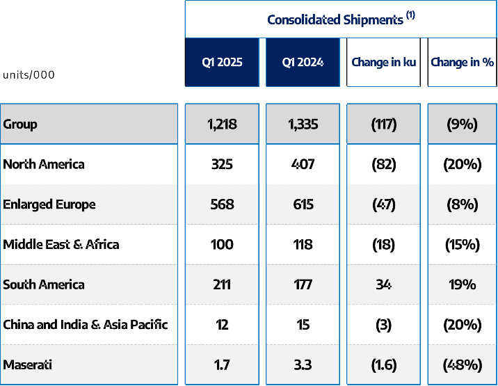 Stellantis Reports Q1 2025 Consolidated Shipment Estimates of 1.2 Million Units Globally, -9% y-o-y