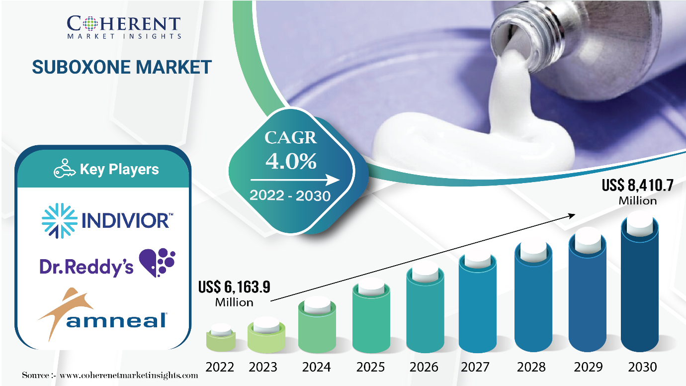 Suboxone Market size to reach US$ 8, 410.7 Million by 2030, says Coherent Market Insights