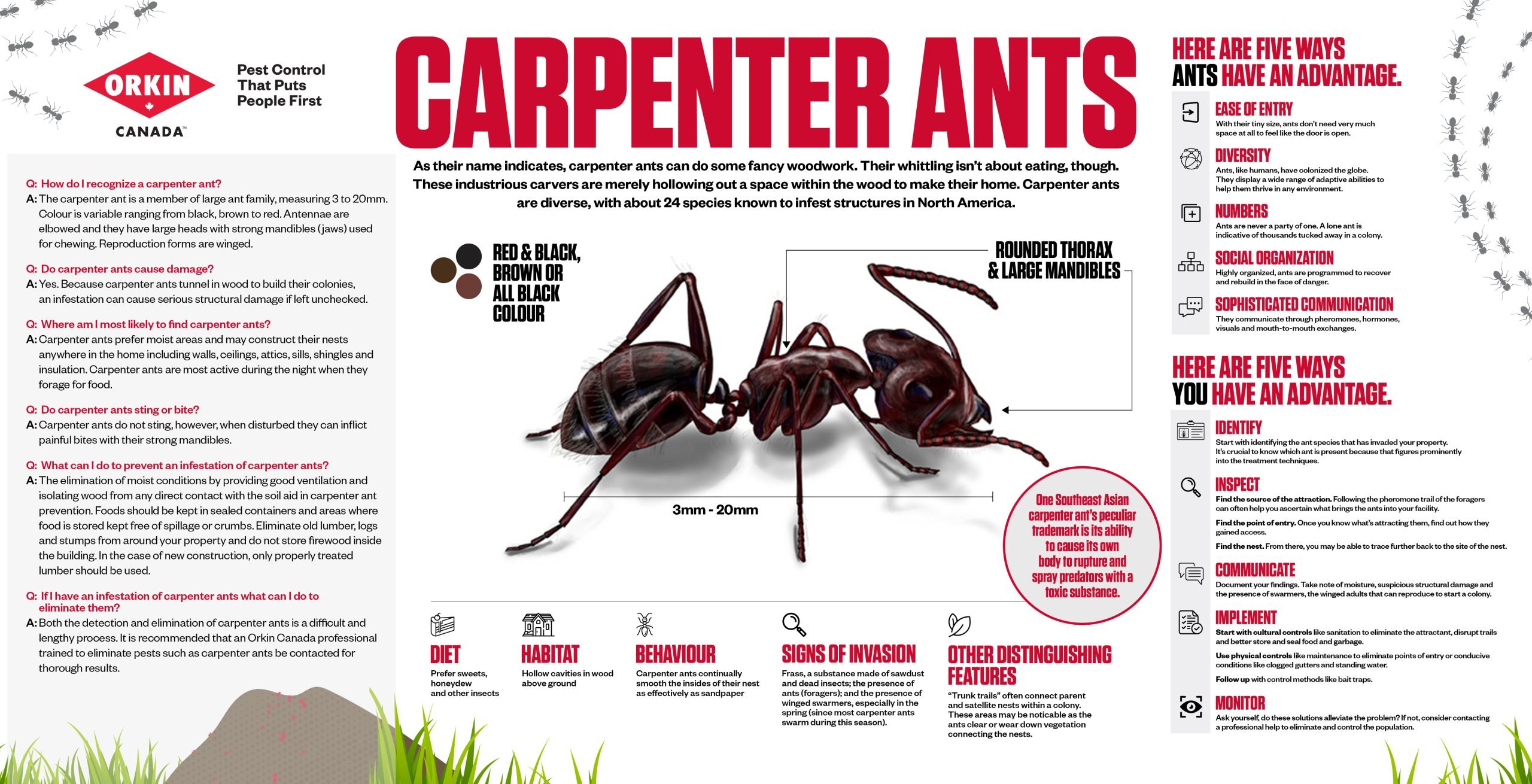 According to Orkin Canada, the country’s leading pest control provider, homeowners can reduce the risk of carpenter ant infestations by:
