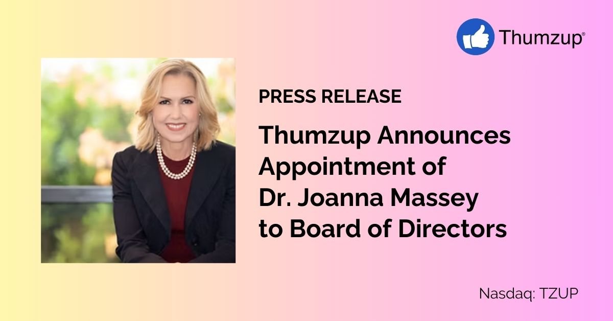 Los Angeles, CA, Jan. 16, 2025 (GLOBE NEWSWIRE) — Thumzup Media Corporation (“Thumzup” or the “Company”) (NASDAQ: TZUP), an emerging leader in social media branding and programmatic marketing solutions, is pleased to announce the appointment of Dr. Joanna Massey to its Board of Directors. Dr. Massey serves as an independent director and Chair of the Nomination and Corporate Governance Committee.