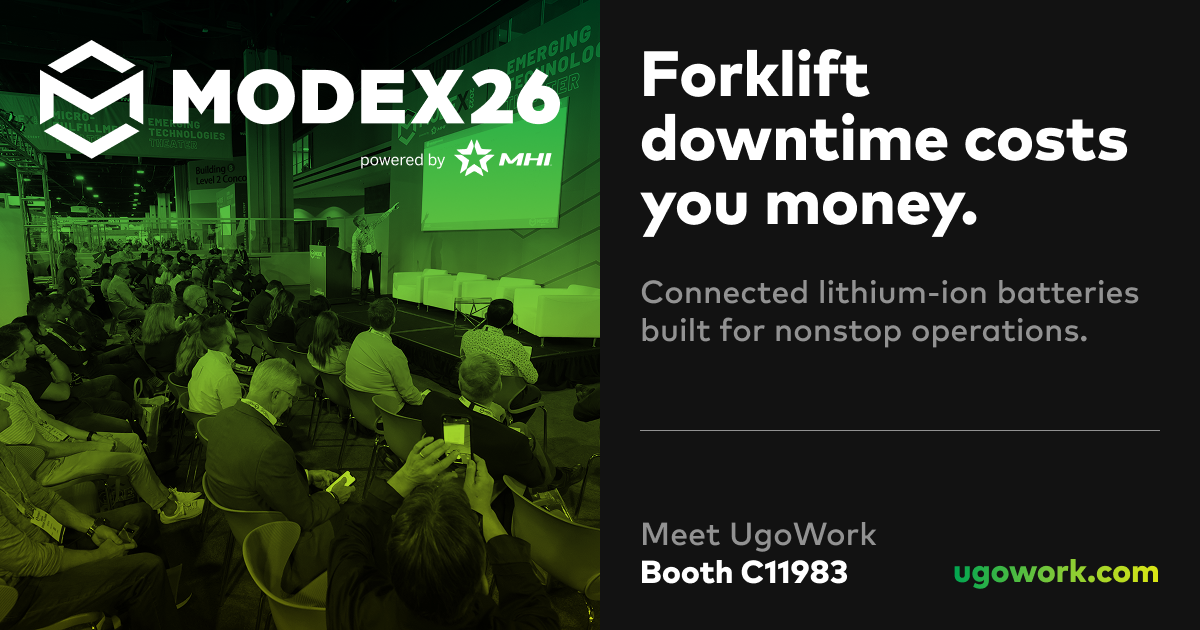 UgoWork showcases connected lithium-ion battery solutions at MODEX 2026, addressing costly forklift downtime with technology built for continuous operations.