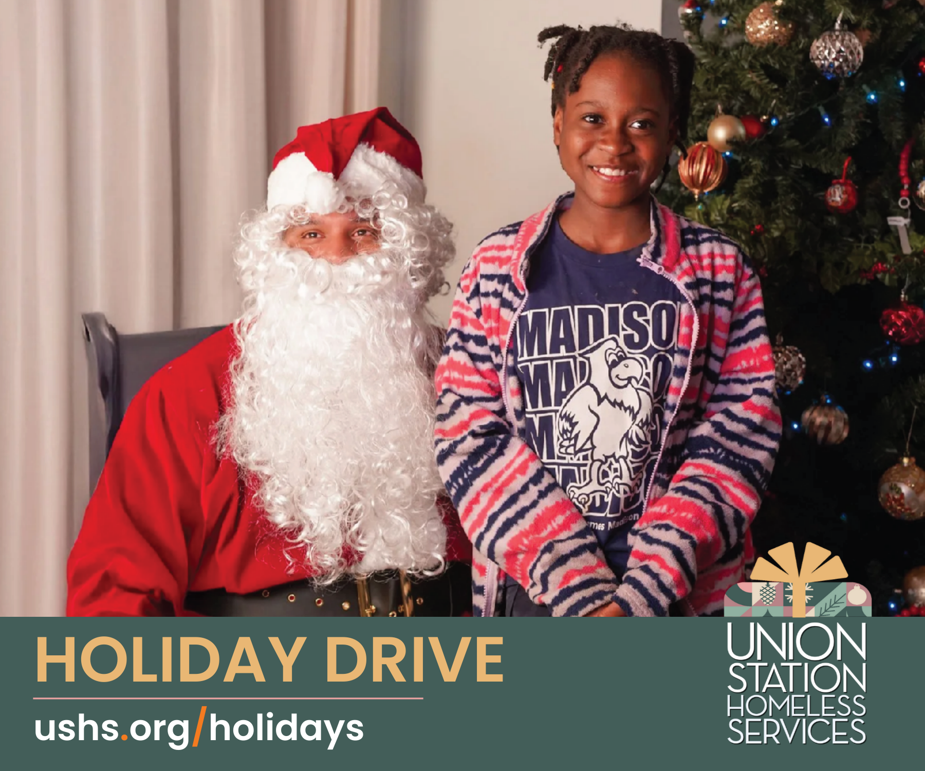 Santa visits Union Station Homeless Services at the annual Holidays at the Station event providing community children with joy and warmth for the holidays.