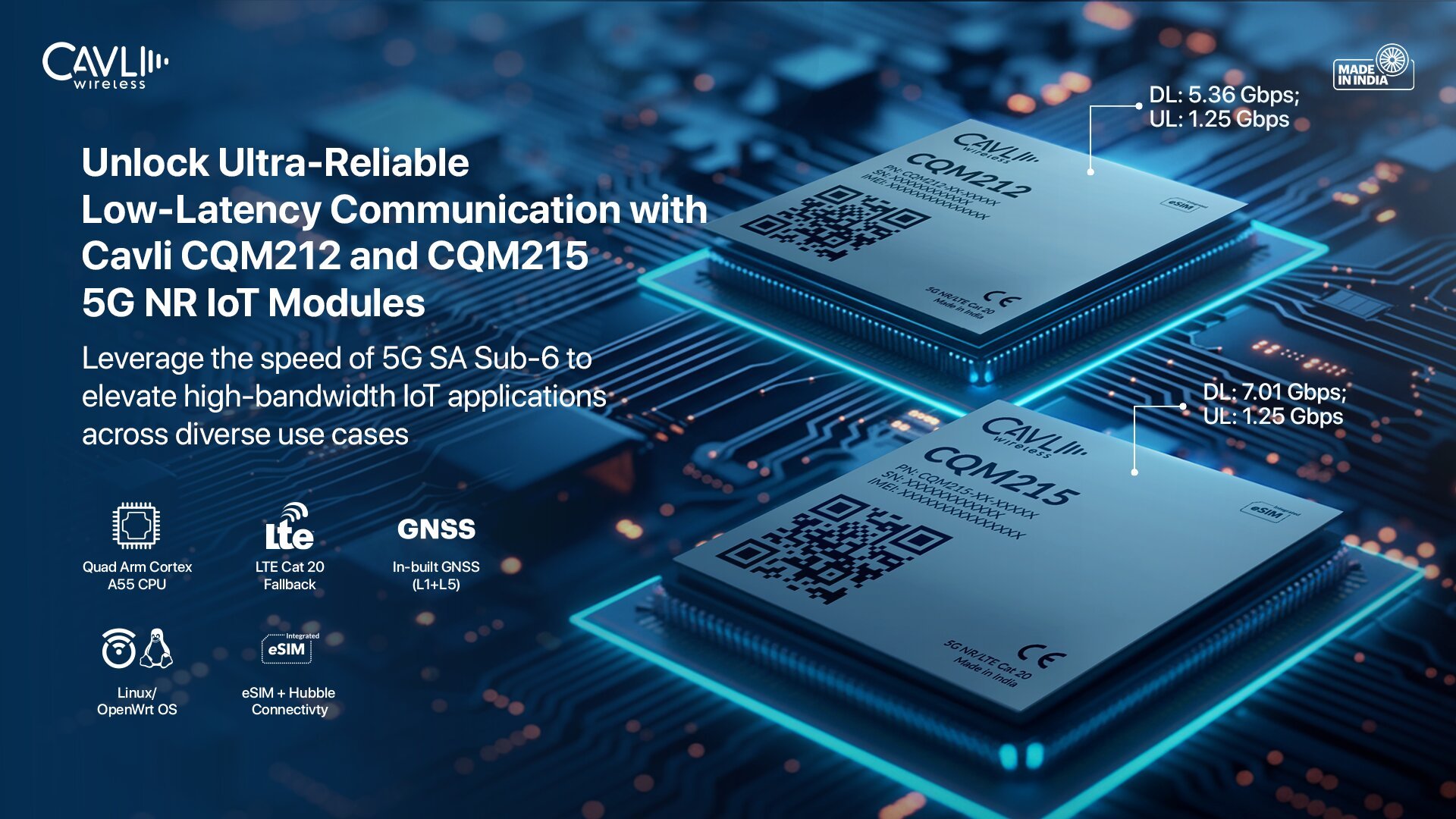 NEW DELHI, India, Oct. 08, 2025 (GLOBE NEWSWIRE) — Cavli Wireless, a leading innovator in cellular IoT solutions, is excited to unveil its ultra-low latency flagship 5G NR modules, the CQM212 and CQM215, at India Mobile Congress 2025. Engineered for high-throughput connected applications, these modules deliver high-bandwidth 5G NR connectivity across a wide range of IoT deployments. With this launch, Cavli continues to solidify its position as a trusted partner for OEMs developing next-generation IoT solutions.