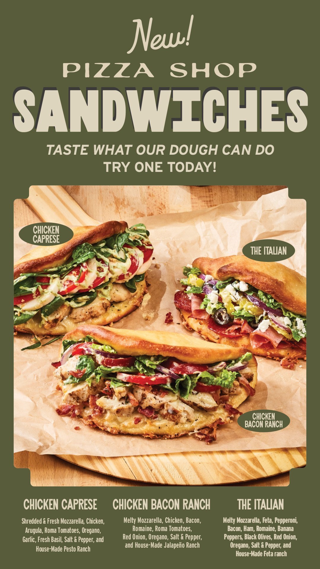 New Pizza Shop Sandwiches! Try all 3!